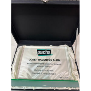 El vidrio aporta elegancia, ideal para reconocimientos corporativos o institucionales.