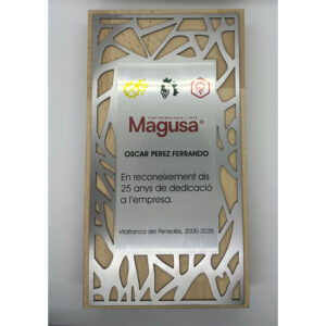 La personalización incluye todas las fases: diseño, selección de materiales, forma, dimensiones y estilo general. También incorporamos grabados con nombres, logotipos, fechas o mensajes especiales. Cuando es necesario, combinamos varios materiales para conseguir un resultado más distintivo y alineado con la temática del acto.
